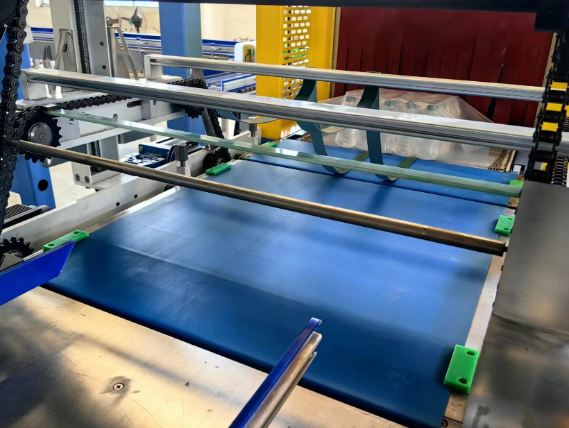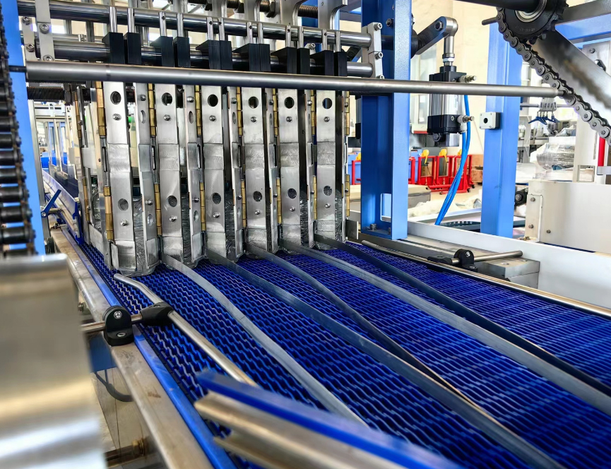 2、对国内瓶型尺寸误差较大这一实际情况,为防止被包装物向前输送当中出现的倒瓶现象的发生,本公司生产的全自动热收缩薄膜包装机在推瓶机构上专门设置了自动离合、光电停机装置,复位快捷,可在一分钟内复位完毕,避免了由于倒瓶而可能造成的频繁停机。