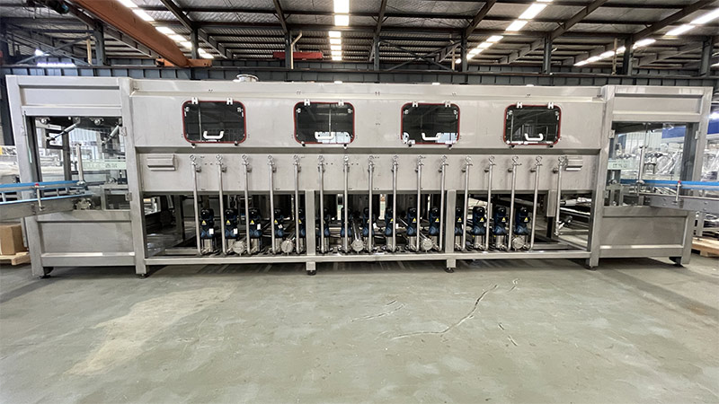 该设备集自动拔盖、自动外刷桶、自动上瓶机构、自动洗瓶消毒、自动灌装、自动套盖、自动压盖和灯检、热缩膜、提桶套袋、成品送出为一体,使用的原材料符合食品行业和其他行业要求。该设备采用AC380V电源.