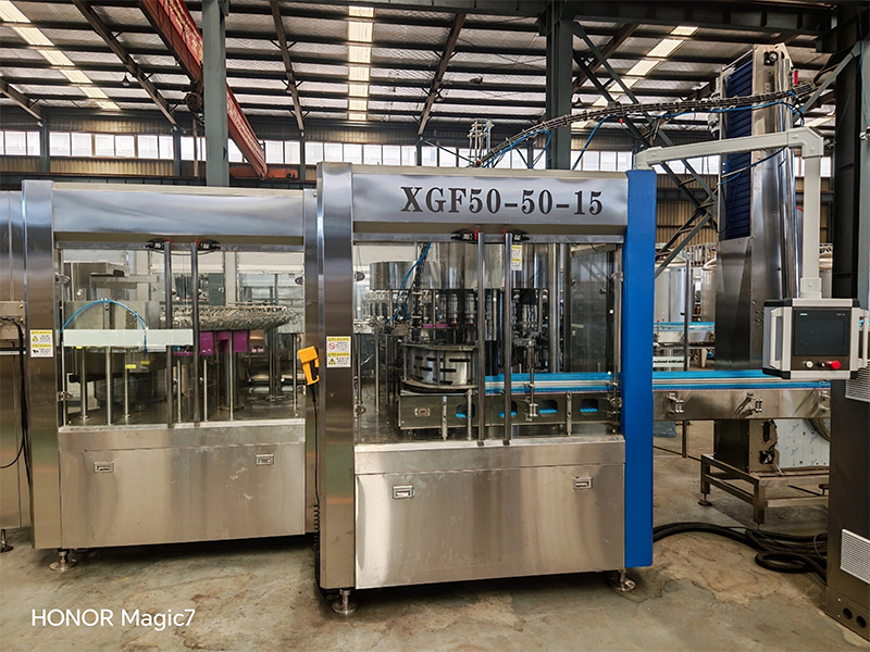 含气饮料设备将冲洗、灌装、封盖三功能组合在一个机体上,全过程实现自动化,碳酸饮料设备适用于灌装可乐、雪碧、含气饮料等含二氧化碳气体的饮料。