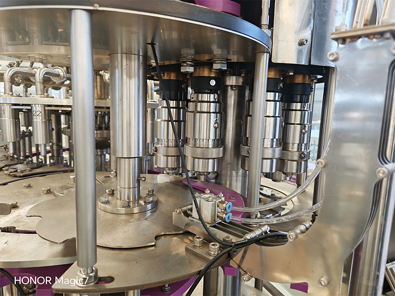 含气饮料灌装生产线配有CO2压力控制精确,液位控制稳定;设有多处卡瓶、缺瓶、缺盖、过载等保护报警装置,确保出品质量。