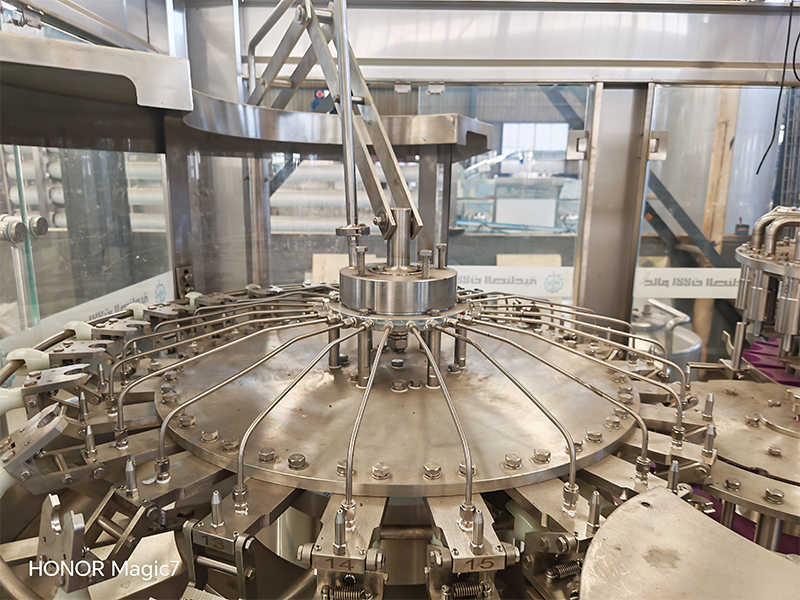 含气饮料灌装设备将冲洗、灌装、封盖三功能组合在一个机体上,全过程实现自动化,适用于灌装可口可乐、雪碧等含二氧化碳气体的饮料。