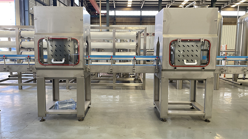 Work steps: Automatic lid removal - Automatic external brush bucket - Automatic upper bucket - Medicine washing - Raw water internal and external washing - Pure water internal washing - Filling - Automatic lid sorting - Capping - Automatic conveyor belt output - Lamp inspection - Heat shrinkage - Finished product