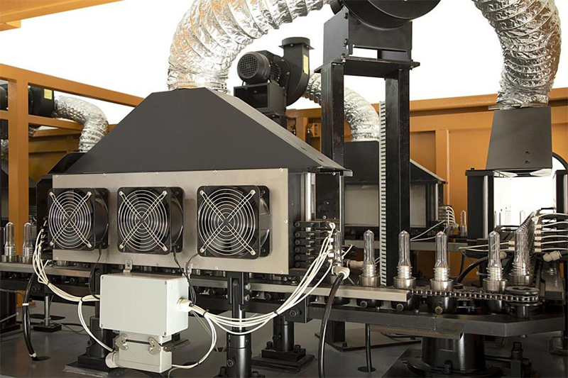 The constant temperature lightbox adopts a self feedback closed-loop regulation system. After setting the temperature value, the equipment can automatically adjust the output power in a constant ratio, without being affected by voltage fluctuations and environmental temperature changes. At the same time, with the assistance of a frequency converter to control the circulating air, it can effectively ensure the constant temperature inside the lightbox, so that each preform is uniformly heated. Moreover, the bottles maintain self rotation in the lightbox, ensuring even heating on all sides of each preform, thereby improving the blowing yield and enhancing the adaptability of the preform wall thickness (up to 4.5mm); And it is more suitable for use in environments with large temperature differences (-28~45 ℃).
