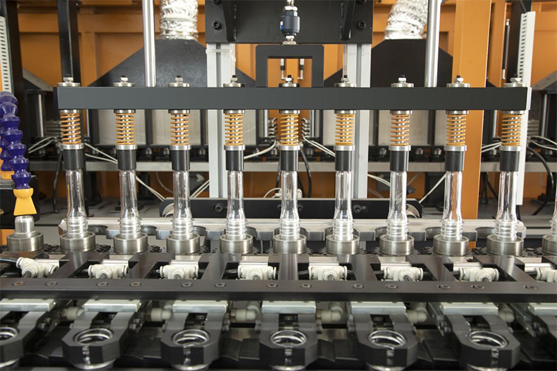 Stretching system: The bottle blowing and lifting process also uses servo motors, greatly improving the flexibility and accuracy of the bottle blowing adjustment process (facilitating flexible adjustment of lifting for various bottle types).